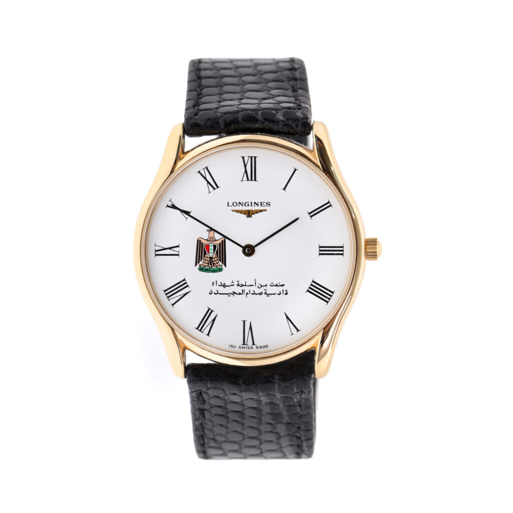 Un cadou protocolar de excepție a fost și ceasul Longines Gents, care a fost dăruit de Saddam Hussein, Președintele Irakului, politicianului Corneliu Vadim Tudor. Ceasul a fost o comandă specială, fiind realizată în ediție limitată, decorat cu stema Irakului și cu o mențiune cu privire la materialul simbolic intrat în aliajul de fabricație: „fabricat din armele glorioșilor martiri ai lui Saddam Husein”. Ceasul de colecție, care a aparținut lui Corneliu Vadim Tudor, are prețul de pornire de 600 de euro.