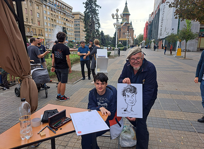 Radu Clețiu a mai constatat că totuși e stresant să desenezi pe centru în Timișoara 2023 – Capitală Culturală Europeană.