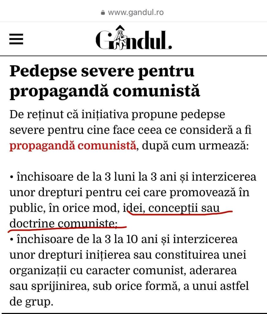 Natalia Onofrei, scriitoare incomodă și critică la adresa derapajelor sociale și a excesului de putere, atrage atenția asupra unei propuneri legislative aberante și ambigue, prin care se dorește pedepsirea cu închisoare și interzicerea unor drepturi pentru persoanele care fac ceea ce poate fi considerat propagandă comunistă, prin promovarea în mod public, în orice mod, a unor idei, concepții sau doctrine comuniste. Onofrei demontează proiectul legislativ prin apelul la memorie, în special, al generațiilor care au crescut și trăit în perioada comunistă.