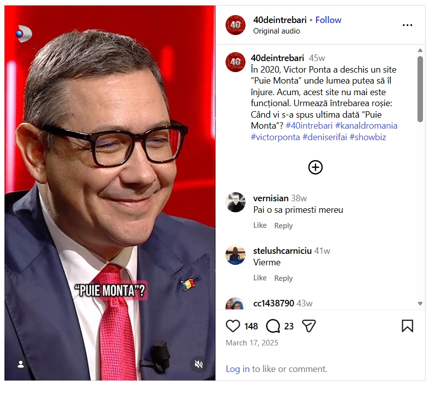 În 2020, Victor Ponta — fost prim-ministru, fost lider PSD, actor central al USL — declară public că a creat un site intitulat „puiemonta”, conceput ca spațiu unde oamenii îl pot înjura liber. Nu este o acuzație din presă. Este auto-declarație, repetată ulterior în interviuri și emisiuni TV.