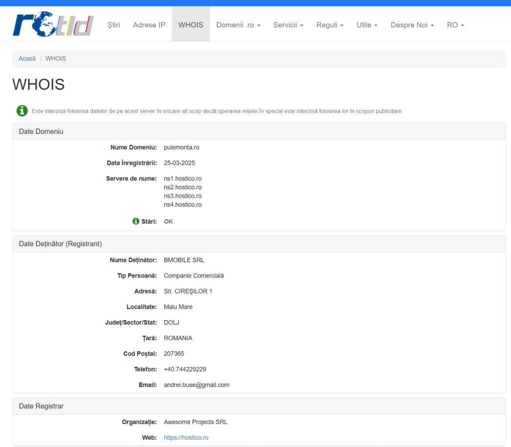 În martie 2025, domeniul este reînregistrat — dar aici apare un element crucial de claritate factuală. Noul deținător este o companie comercială privată, fără legătură politică publică cu Victor Ponta. Înregistrarea este realizată printr-un registrar de servicii web. Mai mult, nu există nicio continuitate simbolică sau politică între „puiemonta” din 2020 și domeniul din 2025.