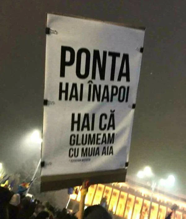 În lipsa unui program politic coerent și a unor lideri asumați, protestul s-a condensat într-un limbaj minimal: sloganul. Iar sloganul suprem, deja prezent în scandări și pe pancarte, era „Muie PSD”.