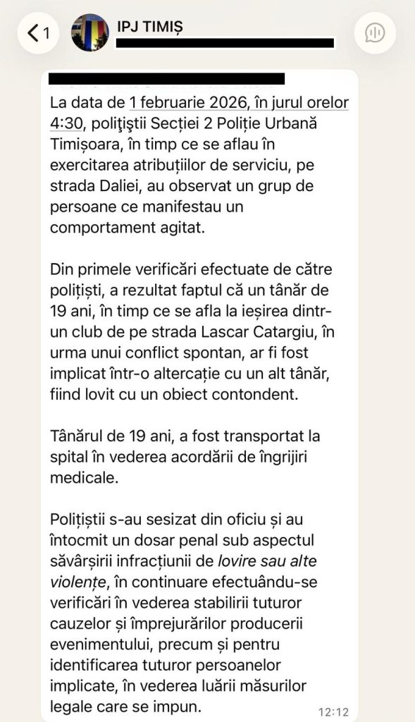 Mai multe detalii despre incident și despre comunicarea deficitară a IJP Timiș și a clubului Poli Timișoara puteți citi aici: Autoritățile mint prin omisiune. Bătaia din noapte, versiunea oficială și probele care o contrazic – ce nu se leagă în cazul Lucas Sasu – ECOPOLITICA