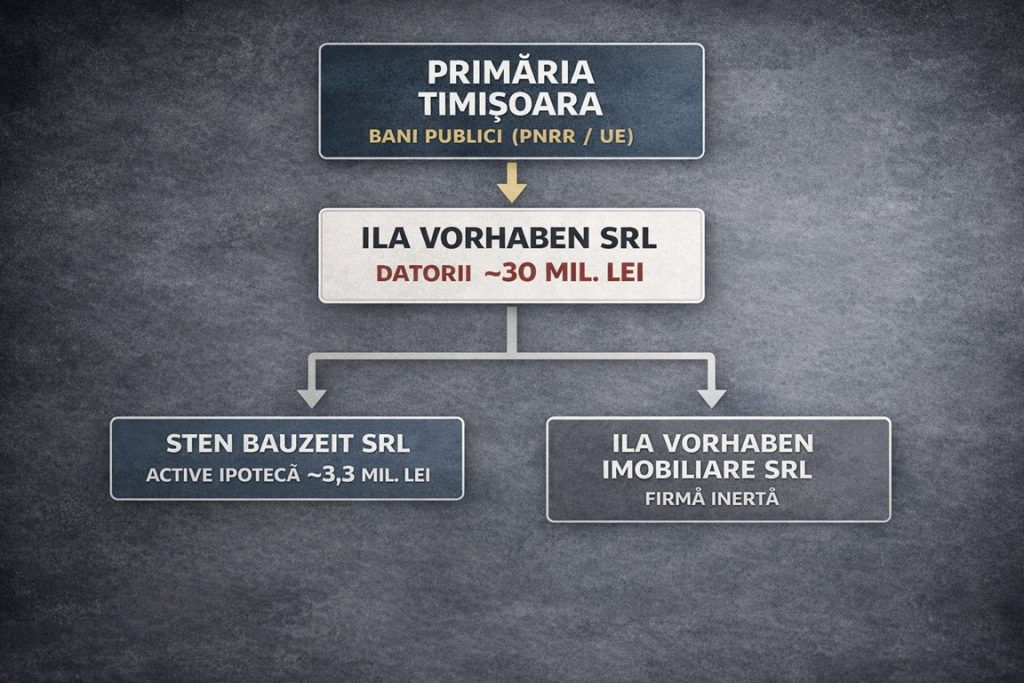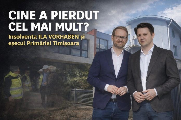 În timp ce Primăria Timișoara vorbește despre investiții, șantiere și fonduri europene, realitatea din acte spune o poveste mult mai incomodă. Un constructor care a rulat zeci de milioane de lei din bani publici a intrat în insolvență, a blocat proiecte strategice, a lăsat zeci de firme locale fără bani și a împins orașul într-un risc major de pierdere a finanțărilor PNRR. Insolvența ILA VORHABEN SRL nu este un accident izolat, ci rezultatul unui sistem de decizii administrative tolerante, al unei scheme financiare fragile și al unei Primării care a continuat să contracteze, să prelungească și să ignore semnalele de alarmă. În acest dosar nu vorbim despre o firmă care a eșuat, ci despre un oraș care plătește.
