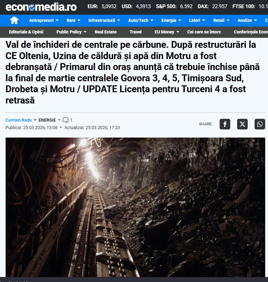 Nu este o decizie izolată, ci parte a unui proces mai larg asumat de România prin planurile de restructurare energetică și prin angajamentele din PNRR, care prevăd eliminarea treptată a capacităților pe cărbune.