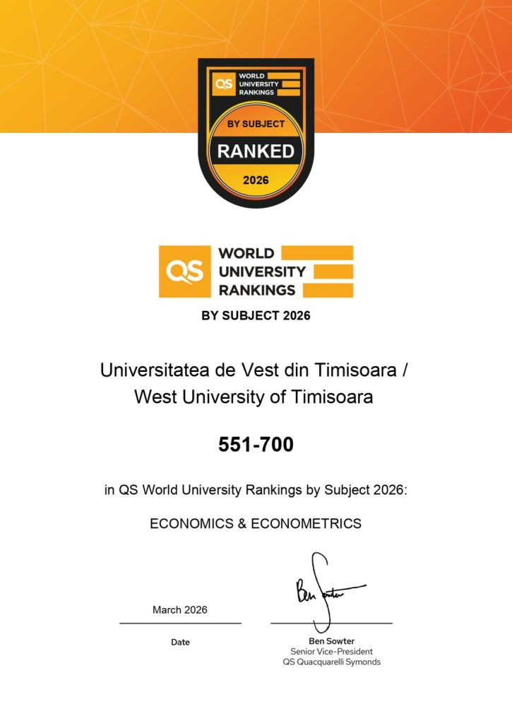 Ediția 2026 a prestigiosului clasament internațional QS World University Rankings by Subject reconfirmă statutul Universității de Vest din Timișoara ca actor academic relevant pe scena globală, evidențiind performanța sa în domeniul Economie și Econometrie.