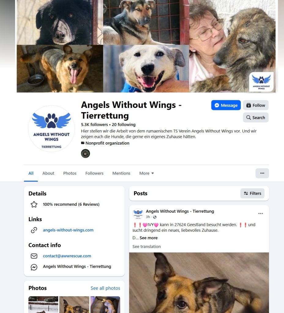 În același timp, rețeaua nu este izolată. Ea este conectată la un ecosistem mai larg de ONG-uri și platforme occidentale care intermediază adopții de animale din România. Pagini precum „Angels Without Wings – Tierrettung” din Germania sau „Hunde Adoption Direkt e.V.” din Olanda, arată explicit că promovează câini proveniți din adăposturi din România către adopții în Germania și alte state vest-europene. Nu vorbim de cazuri punctuale, ci de un circuit deja funcțional, în care România devine sursă, iar Vestul piață de adopție.
