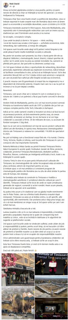 În versiunea Robi David, „third space” devine un termen umbrelă pentru „succesele” parțiale sau moștenite ale administrație Fritz, unde Robi ne injectează cinematografe reabilitate, hale reconvertite și…un stadion aflat în calendar până în 2030.