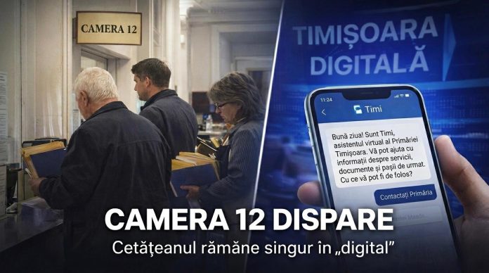 În fiecare lună, între 350 și 600 de timișoreni ajung fizic la Primărie pentru a-și rezolva problemele la ceea ce este cunoscut drept „camera 12”. În aprilie 2026, administrația decide să desființeze exact serviciul care prelua acest flux, invocând digitalizarea. Numai că, în practică, sistemul digital nu poate răspunde nici măcar la întrebări de bază și trimite cetățeanul înapoi la omul pe care instituția îl elimină.