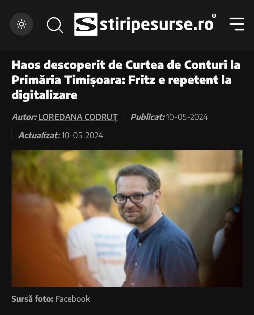 Această contradicție devine și mai evidentă dacă este pusă în raport cu observațiile formulate în 2024 de Curtea de Conturi, care semnala disfuncționalități în zona digitalizării la nivelul Primăriei Timișoara. Dincolo de formulările dure din spațiul public, esența constatărilor era clară, constatând că sistemul nu produce încă rezultate coerente, există probleme de implementare și lipsesc indicatori clari de performanță. În acest context, digitalizarea nu apare ca o infrastructură matură, capabilă să preia integral sarcini administrative complexe, ci ca un proces în curs, cu limite evidente.