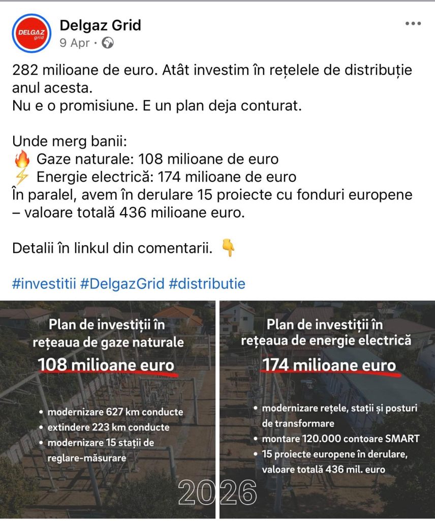 La rândul său, Delgaz Grid SA a transmis un răspuns similar, printr-un mesaj automat generat de sistem, înregistrând sesizarea cu numărul 6098858081 din data de 21.04.2026 și precizând că „vom analiza informațiile transmise și vom reveni cu un răspuns, în cel mai scurt timp posibil”.