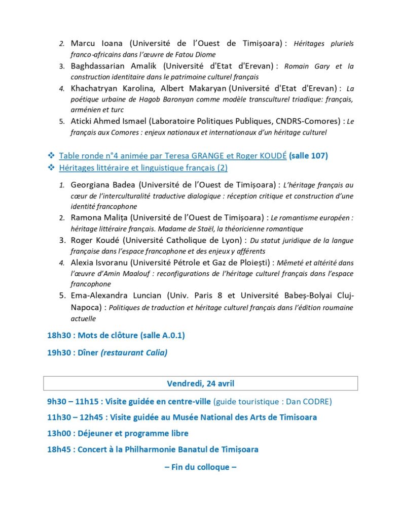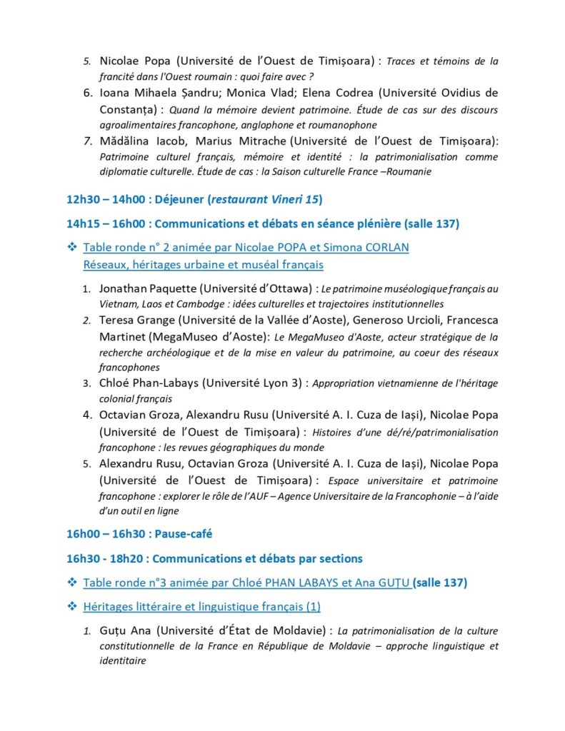Evenimentul va cuprinde o primă serie de activități de cercetare și studiu ale grupului „Patrimoniu și reînnoire: patrimoniul francez în spațiile francofone: perspective interdisciplinare”, din cadrul Rețelei Internaționale a Catedrelor Senghor ale Francofoniei (RICSF).