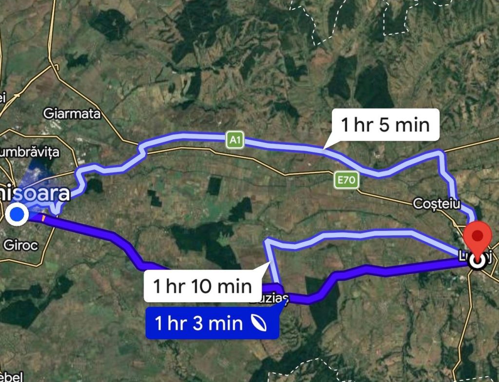 Drumul dintre Timișoara și Lugoj are aproximativ 65 de kilometri pe sens, ceea ce înseamnă circa 130 de kilometri pentru o navetă completă dus-întors. La un program de lucru de cinci zile pe săptămână, rezultă aproximativ 650 de kilometri pe săptămână și, într-o lună obișnuită, aproximativ 2.600–2.860 de kilometri.