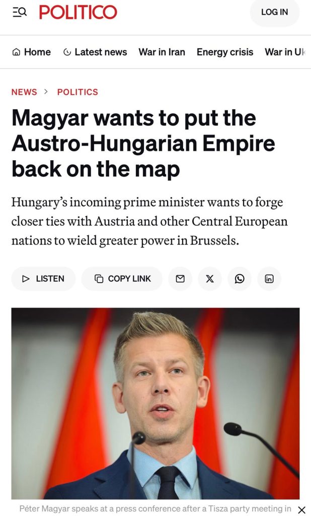 Articolul integral din POLITICO îl găsiți aici: Magyar wants to put the Austro-Hungarian Empire back on the map – POLITICO.