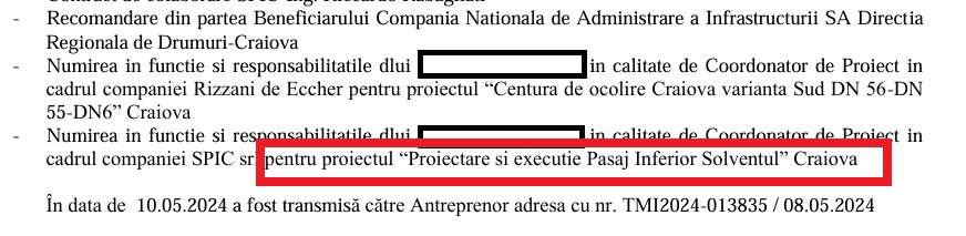 În paralel, documentele analizate de tine introduc un element și mai grav. Existența unei referințe profesionale care nu corespunde realității. În materialele studiate este indicat faptul că, în documentația de susținere a noului expert, apare o experiență legată de un „Pasaj Solventul Craiova” — obiectiv care nu există.