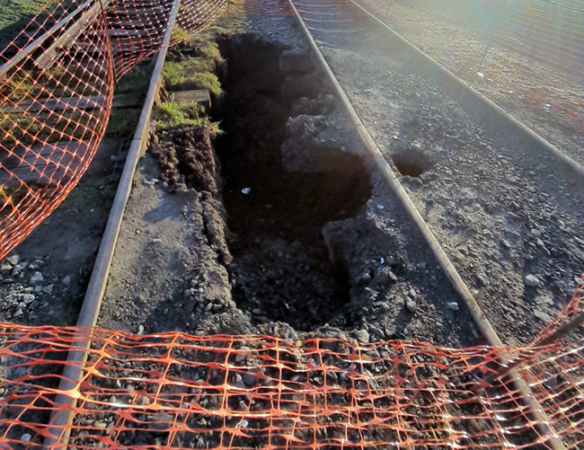Toate aceste elemente converg într-un eveniment fizic grav, mia exact surparea terenului în zona lucrării și afectarea circulației feroviare.